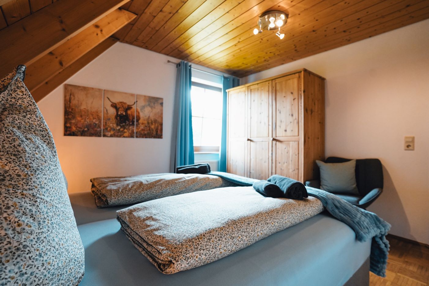 · Rustikale Holzmöbel in beiden Schlafzimmern